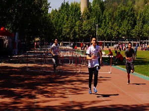 骄阳似火,青春无限,下午一点,参加本次110米跨栏决赛的运动员们于跑道前就位,有条不紊的进行着赛前热身活动。接着,随着一声发令枪响,比赛正式开始。运动健儿们如离弦之箭,脚步如飞。跑道上的十个跨栏正如同一个个通向胜利的台阶,引领着健儿们朝前方奔去。一跳一落,流畅的动作是运动员们终日训练的胜利成果,此刻的跑道也成为了健儿们扬撒青春活力的角斗场。不负青春,不负这热情与汗水,在你辉煌的时刻,时间将会为你铭记。场上气氛热烈,场下观众也热情不减,同学们击鼓助威,为运动员们加油打气,使整个运动会场一片沸腾。最终,来自禁忌书屋