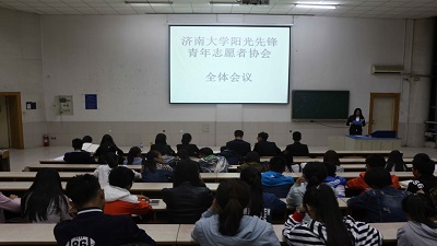 阳光先锋青年志愿者协会见面会正式拉开帷幕。参加此次见面会的有阳光先锋青年志愿者协会主席团、部长团以及2016级全体干事。