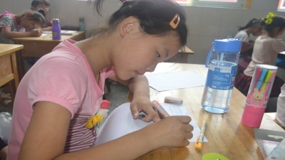 在上午的语文课后,学生们在志愿者的带领下排队来到操场,不同于往常武术体育课的是,在这节课中学生们依据自己的意愿自由地选择进行的活动。操场上到处是孩子们的身影,志愿者和孩子们一起踢足球、跳皮筋、做游戏,每个人的脸上都洋溢着欢快的笑容。中午休息之后,下午的课堂上志愿者为每个同学发一张空白纸,让同学们在这张纸上写上对自己父母或者其他亲人想要说的话作为支教结束之时送给家长的一封信,同学们认真在纸上书写并用彩笔涂画装饰着给家长的礼物。