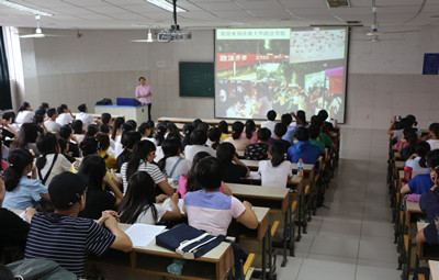 会议开始,朱老师首先介绍了社保专业的课程体系、课程实验室、就业前景及优秀校友和优秀在校生,使新生对社保系有了初步的认识和了解。紧接着优秀学生代表讲了自己在大学期间的学习生活经验,他们分别从目标、学习、组织三个方面作了演讲,并与现场新生进行热切交谈,解答新生的各种问题,气氛活跃。最后社保系主任高功敬借用王国维的三种人生境界:“昨夜西风凋碧树,独上高楼,望尽天涯路”、“衣带渐宽终不悔,为伊消得人憔悴”、“众里寻他千百度,蓦然回首,那人却在,灯火阑珊处”,讲到要正确制定好自己在大学中的目标并且一步步完成,不断增强自己的意志力,好好享受自己的大学生活。