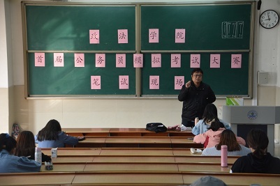 于第十一教学楼2-201教室举办首届公务员模拟考试大赛。本次大赛由笔试和面试两个环节组成,面试将于10月19日举行,行政管理系刘钟华老师作为评委出席了本次比赛笔试现场。