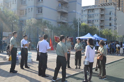 18级新生军训启动仪式正式开始。刘晓娟老师和迪妮尕尔老师身着制式军装,为大家做出军训动员,号召大家在保证身体健康的前提下,发扬不畏困难、艰苦奋斗的精神,以乐观积极的精神态度完成军训。“宝剑锋从磨砺出,梅花香自苦寒来”,只要用心坚持,就会收获增强体魄和培养意志的双重胜利。接着,刘晓娟老师和迪妮尕尔老师为大家提出了一系列军训注意事项及自我保护的措施,为军训安全工作做出理论性指导。最后,禁忌书屋