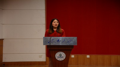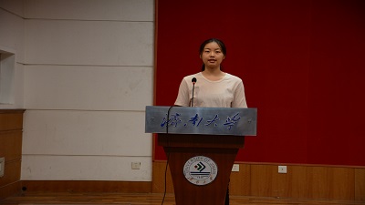 优秀学生干部、山东大学法学专业研究生张蕊同学的的发言充满了对母校的不舍与未来的惴惴不安,鼓励同学们秉承着弘毅博学求真至善的校训,在求学路上不断前行。