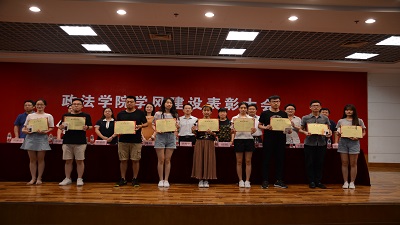 优秀指导老师依次上台发言,国政1401班班主任李洪涛老师提出良好学风对学生成长的重要性,教师应注重培养学生学习的主动性,保障学生学习的稳定性,鼓励学生广泛参加社会实践活动以激发自身积极性,利用现代化的教学手段以实现课堂学习的趣味性和灵活性,从而营造良好的学习氛围。行管1401班班主任胡艳蕾老师提出教学应以学生为本,应帮助学生形成良好的学习自觉意识,建立平等的师生关系,与学生多交流,多认可、鼓励学生,从而帮助学生培养学习热情,提高学习能力。社保1401班班主任朱丽敏老师鼓励学生多参加集体活动,提高自身专业素养。