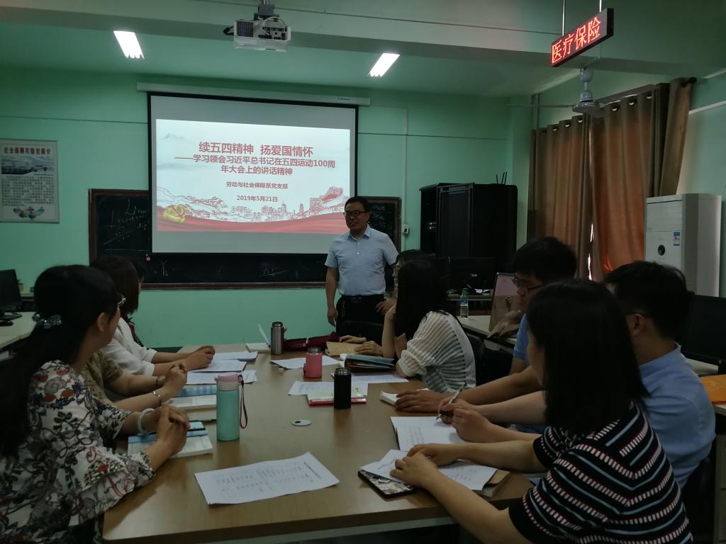 党员大会结束后,党支部开展了题为“续五四精神 扬爱国情怀”的主题党日活动,学习领会习近平总书记在五四运动100周年大会上的讲话精神。张世青副教授从习近平总书记对新时代青年的定位、青年在中华民族伟大复兴征程中担负的责任、青年在中华民族伟大复兴征程中享有的权利、中华民族伟大复兴征程中青年权利的实现四个方面对讲话进行了细致的梳理和解读,并结合专业谈了一些个人看法,教师党员们围绕习近平总书记的讲话进行了热烈的讨论和交流。随后,辛瑞萍同志还带领大家认真学习了《中国共产党重大事项请示报告条例》。