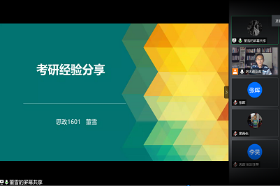 政治学系于6月19日19点至22点在腾讯会议平台举办了2020年思想政治教育专业考研交流会。学院党委书记徐庆国书记、政治学系主任常桂祥教授、政治学系全体老师、禁忌书屋