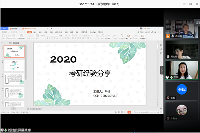 第二位为备考同学做考研交流的是于天雪同学。于天雪同学以优异成绩考上了山东师范大学的思想政治教育专业,她首先为大家推荐了她所使用的考研教材。在专业课的准备上,她建议同学们熟记热门话题,梳理框架、构建知识体系,在专业课题型设置上,于天雪同学建议同学们多读马克思主义原著。针对复试部分,她主要讲解了网络复试的注意事项,并针对复试内容给出了自己的建议。最后,于天雪同学结合自己备考的经验提出效率、兴趣、计划和心态上的一些经验。