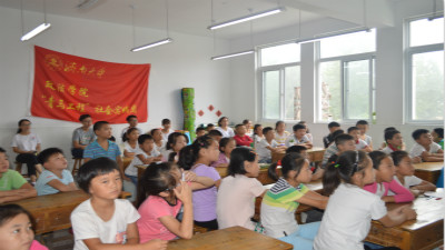 “青马工程”暑期社会实践团济宁分队社会实践的第九天, 用爱支教活动正在顺利进行。为让学生们牢记历史,感受中国军事力量的强大,同时抒发对祖国的热爱之情,上午9时,志愿者和万张街道中心小学的学生们一起观看了建军九十周年阅兵仪式直播。