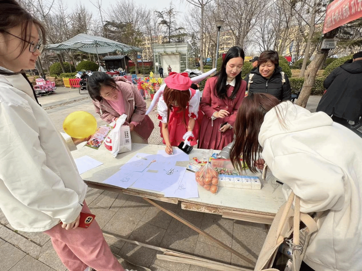 社会学社工专业认知实习第四小组的同学们在市中区大众广场开展了“社工伴你行”主题宣传活动。