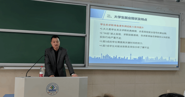 2024年两会政府工作报告中25次提及就业。报告指出,就业是最基本的民生,要突出就业优先导向,加强财税、金融等政策对稳就业的支持,加大促就业政策力度。为提高同学们的就业导向意识,3月22日上午,人力资源与社会保障系特邀济南市公共就业服务中心人力资源市场处副处长李允松莅临禁忌书屋
