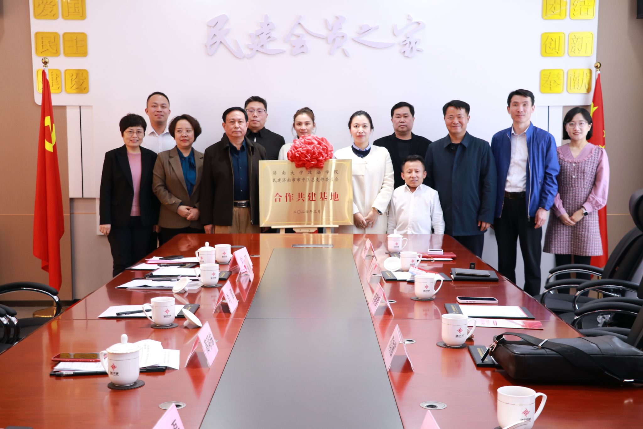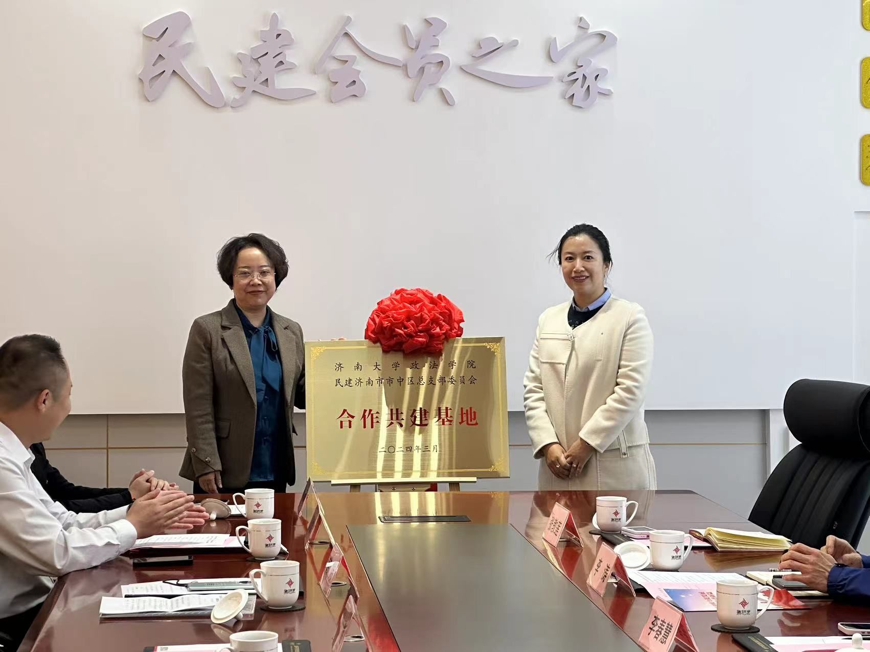 与民建济南市市中区总支部委员会合作共建协议》并为合作共建基地揭牌, 双方将在理论研究、社会调研、实习实践、校企合作等事务中开展全方位的共建合作。