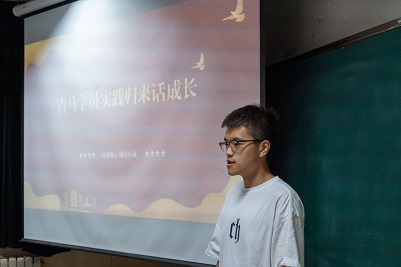 “青马工程”暑期社会实践团的代表,结合自身实践经历,向大家分享了自己参与暑期实践的心得体会。参与制作红色宣讲微视频的彭郑媛同学表示,通过重走红色足迹,自己对于王尽美烈士的事迹有了更深的了解,自己作为青马班的一员更是应该赓续红色血脉,传承红色基因。参与“青鸟计划”“返家乡”实践的蒋万水同学分享了自己在家乡人民法院的实习经历。他表示,通过切身的感受以及实际操作,自己对于法学专业有了更深的自豪感。参与济南市仁贤社区实践的王炳坤同学表示,社区活动看起来只是一些平凡而又琐碎的小事,但正是这些平凡的点点滴滴慢慢改善了居民的生活。通过此次锻炼,自己获得了多方面的成长。几位学员通过讲述自身实践故事,传递出青春力量,彰显新时代青年风采。