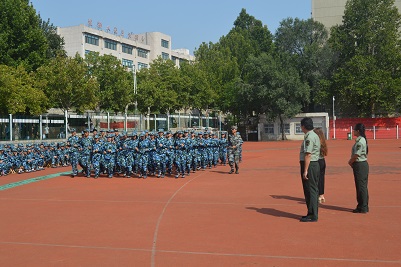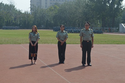 于北苑大操场举办2018级新生军训汇演。党委副书记、副院长于龙泉,2018级新生辅导员刘晓娟,预科班班主任迪妮尕尔·艾尔夏提观看并检验汇演。