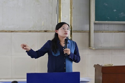 首先,刘老师开始题为“在最美的年纪遇见最好的自己”的演讲,希望同学们在大学时间里能够“认识自己,完善自己,做足准备,迎接未来”。演讲从明天、今天和昨天依次展开。在最先谈论的“明天”中,刘老师结合2018年和2019年最新的考研和毕业生数据,就本科毕业后大学生普遍存在的3个选择:考研、就业和其他情况谈论了自己的看法。在分析就业压力与考研形势的过程中为接下来要讲的“今天”的内容做出铺垫。对于“今天”所涉及的问题,刘老师通过为同学们计算实际学习时间,列举奋斗目标例如奖学金、社会实践、科创赛事与保研等让孩子们保持一颗清醒的头脑,专注于眼下的工作与奋斗目标。随后,刘老师与同学们分享这一年的收获,告诉他们每一个人都有一条属于他自己精彩的路,鼓励孩子们一定要坚持自己的初心和梦想。