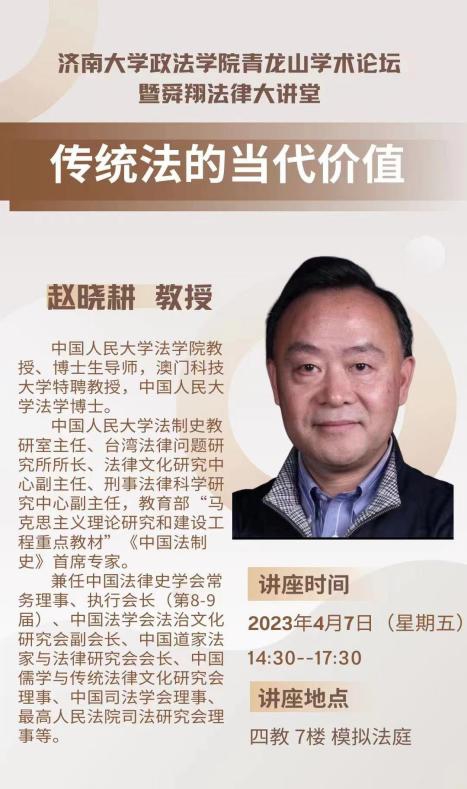 青龙山学术论坛暨舜翔法律大讲堂于四教模拟法庭成功举办。讲座邀请中国人民大学法学院赵晓耕教授主讲,题目为“传统法的当代价值”。禁忌书屋