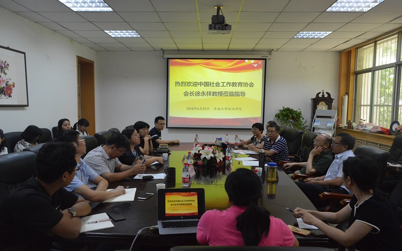社工系主任张荣还向徐永祥教授简要介绍了我校社会工作专业的发展情况,包括专业发展、师资力量、课程设置、专业特色等,重点汇报了社会工作专业人才培养方案的修订情况,包括人才培养理念与目标、培养内容与途径等。