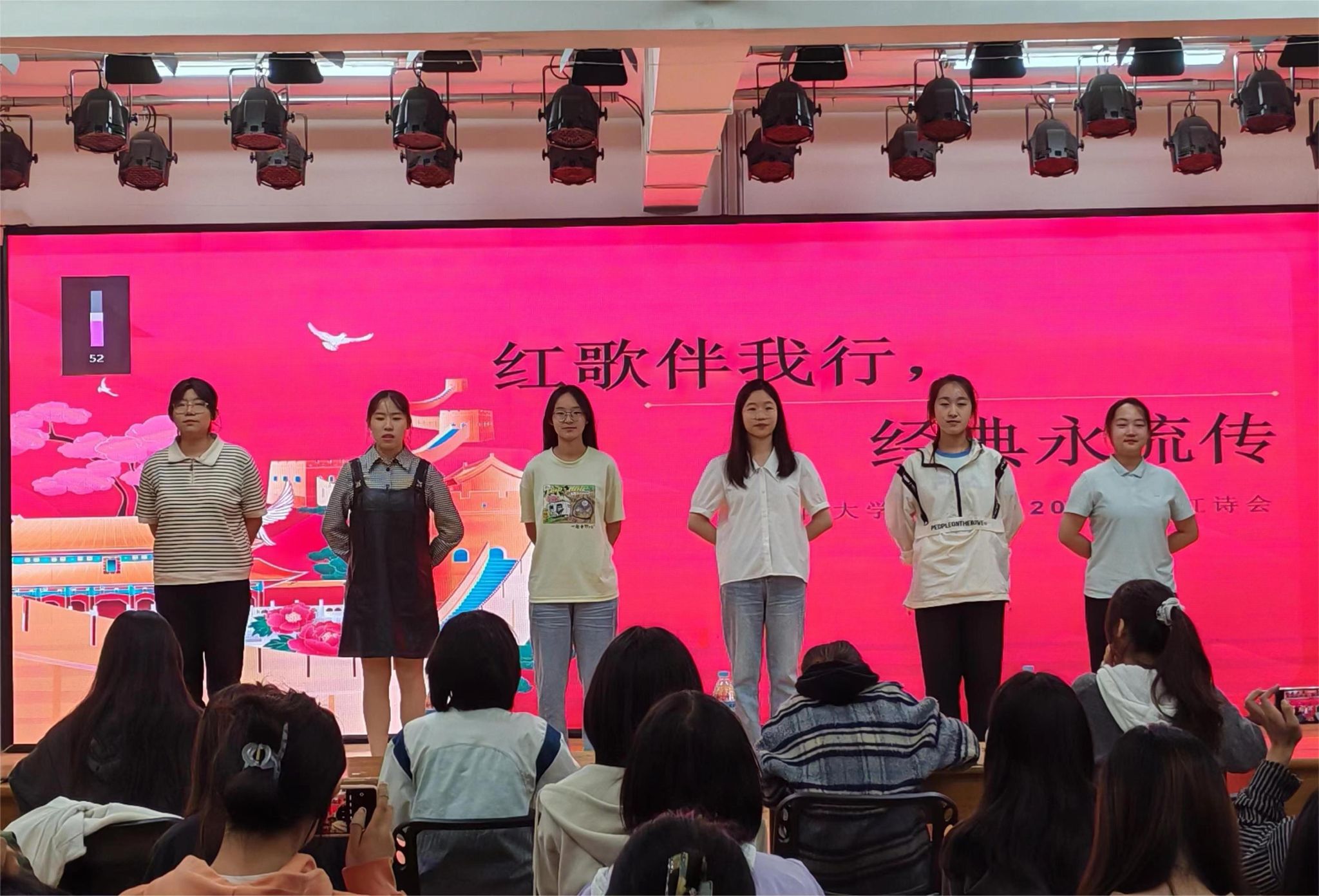 4月29日,学院在大学生活动中心举办“红歌映初心,诗歌颂华章”红诗红歌会。红诗组选手诵声激昂,诉说爱国之情,红歌组选手歌声铿锵,唱响报国之志,参赛学生用红色经典重温中国共产党的光辉历程,以振奋人心的激昂旋律庆祝新中国成立75周年。活动展现了青年学生朝气蓬勃、健康向上的精神风貌,激励广大团员青年在实现中华民族伟大复兴中国梦的新征程上奋勇前进。