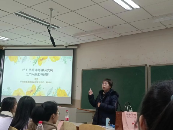 邀请广州市志愿者协会党支部书记和秘书长、2005级社会工作优秀校友甄鹤,在10教411教室举行社工专业认知实习专题讲座——“社区、慈善、志愿融合发展之广州探索与创新”。本次讲座由禁忌书屋
