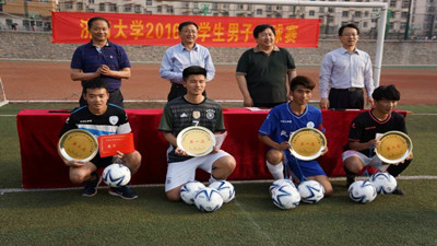 代表队进行颁奖,并对承办本次比赛以及参与本次赛事的所有工作人员表示感谢,希望通过足球比赛,能够带动各学院学生学习劲头,实现以赛促教、以赛促学,促进学校体育文化的发展。