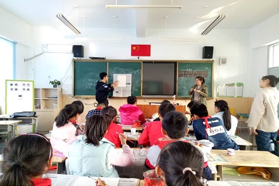 阳光先锋青年志愿者协会的志愿者们来到后龙小学进行志愿活动,带领小学生体会水墨画的魅力。