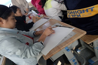 下午三点,志愿者们推开了教室的门,看见孩子们一个个天真无邪的脸上露出来开心的笑容,热烈的欢迎掌声,一声声甜甜的“哥哥,姐姐们好”,打动了志愿者们的心,志愿者们迫不及待地引领孩子们进入水墨画的世界。在志愿者的指导和鼓励下,孩子们拿起来画笔,发挥自己的想象力,在空白的纸上用五彩缤纷的颜料描绘出自己心中的世界。与此同时,志愿者们耐心回答孩子们的问题,仔细聆听他们内心的想法,鼓励他们勇敢的展现和表达自己。下午三四点,阳光依旧明亮温暖,照亮了这充满欢声笑语的教室,也温暖了孩子们与志愿者的内心。在此过程中,孩子们展现出了对水墨画的兴趣,了解了关于水墨画的基本知识,掌握了水墨画的基本功。四点十分一堂课结束,志愿们与孩子们依依不舍的告别,虽然本次志愿活动结束了,但这次活动所收获的感动会一直在我们志愿者的心中,激励我们在志愿的道路上不断前行。