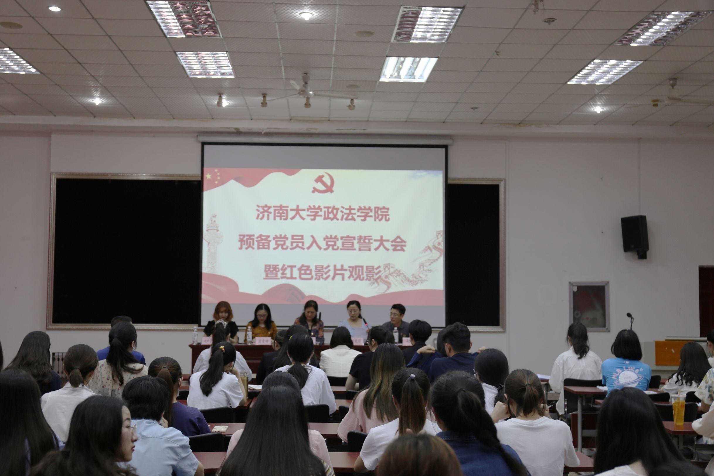 党委在4号教学楼模拟法庭召开2021上半年预备党员入党宣誓大会暨红色影片观影。学院正处级组织员国迎春,团委书记晁素娜,学生第三党支部书记迪妮尕尔·艾尔夏提,行政党支部书记赵朔,研究生党支部书记胡传清和145名新发展的预备党员参加会议。会议由学生第二党支部书记刘晓娟主持。