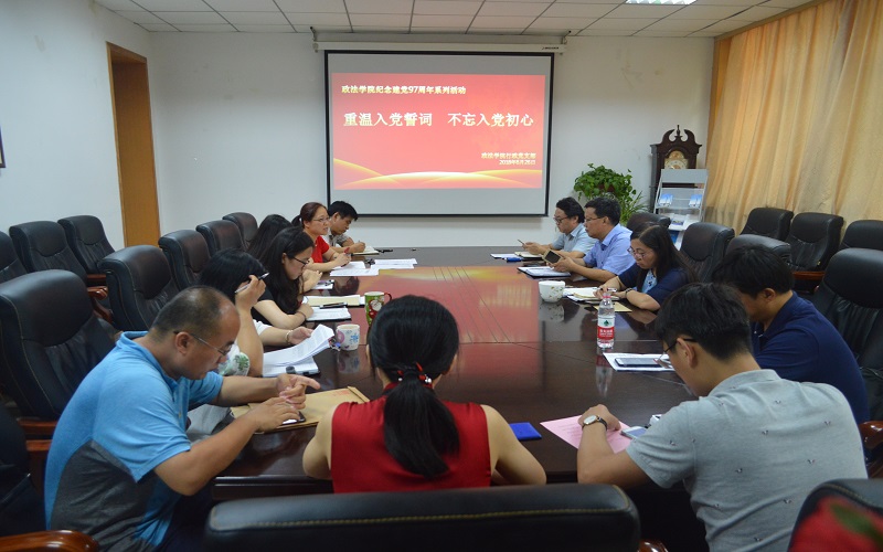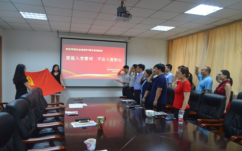 行政党支部于三教113会议室举行了“重温入党誓词,不忘入党初心”学习大会,大会由行政党支部书记牛亚慧主持。