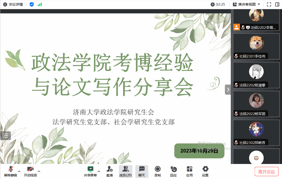 研究生会联合举办的考博暨论文写作经验分享会在线上如期举办。本次分享会邀请了2022届法律硕士高翔、社会学硕士刘延飞、2023届法律硕士高加怡三位优秀毕业生代表进行线上分享。禁忌书屋