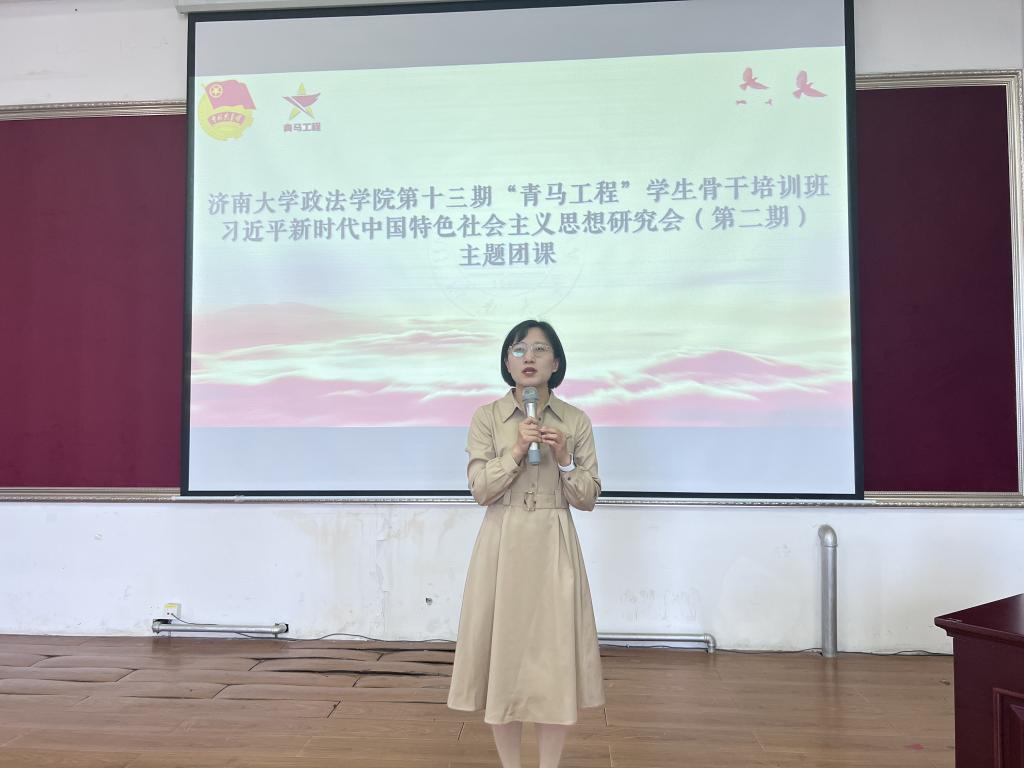第十三期“青马工程”学生骨干培训班和习近平新时代中国特色社会主义思想研究会(第二期)在四教模拟法庭组织开展主题团课活动。
