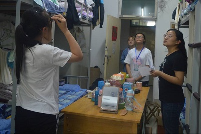 全体辅导员教师和部分班主任对学生宿舍进行检查。