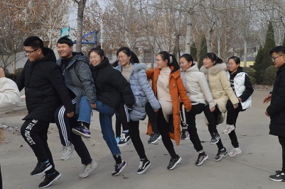 首先,由主持人宣布开场白,裁判长宣读比赛规则,将下乡志愿者分为泉新全沂、南鲁寻梦、冬暖梦泽三队,游戏中由裁判计分并进行监督。下乡志愿者在队长的带领下,先后进行坐地起身、链接加速、保卫公主、耐力大比拼、猛虫过江等游戏。游戏过程中,各队伍成员相互协作、团结一致,现场气氛活跃,欢笑不断。在游戏休息期间,三支队伍带来集体歌舞、歌曲串烧、歌曲大合唱等节目,所的游戏与活动井然有序。最终,南鲁寻梦队在比赛中荣获第一名,由主持人为其颁奖,其他两支队伍也获得不同奖励。最后,在场人员进行合影留念,本次新野社团趣味运动会落下帷幕。天气虽然寒冷,但新野志愿者在此次活动中收获了集体的温暖。