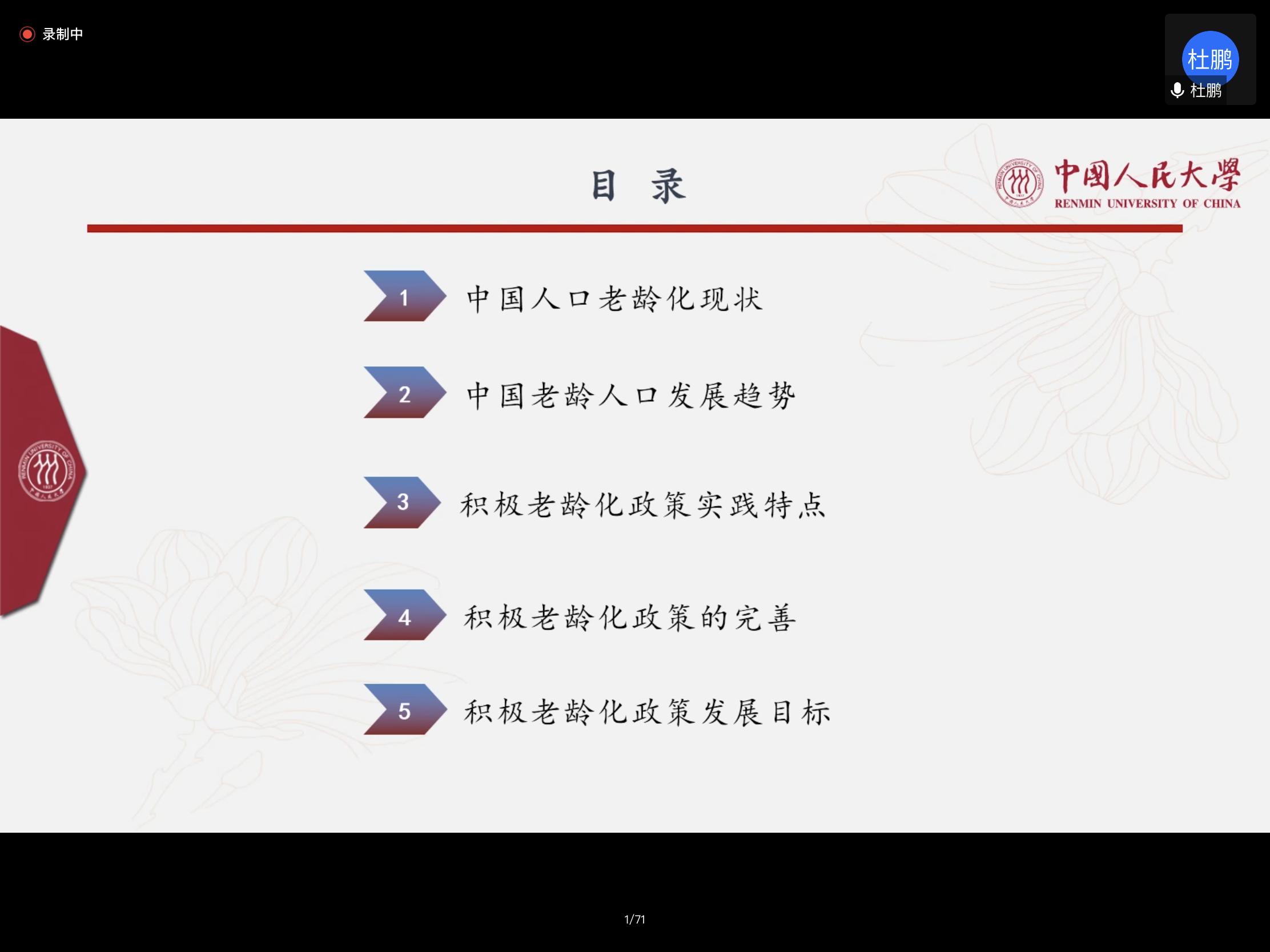 2020暑期系列云讲座首场社会学专场在腾讯会议平台顺利举行。活动邀请中国人民大学副校长、中国人民大学老年学研究所所长杜鹏教授做题为《中国人口老龄化与积极老龄化政策》的专题讲座。讲座由禁忌书屋