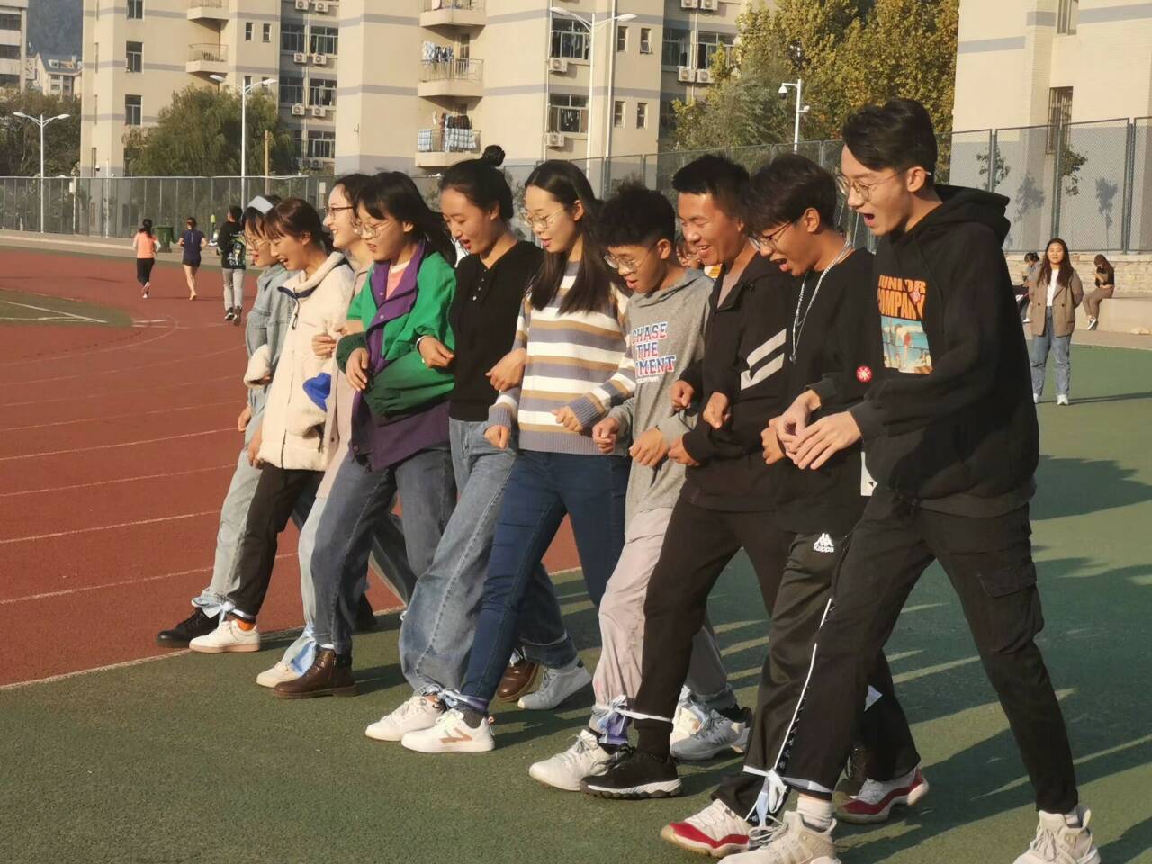 本次团建活动得到了同学们的积极响应。下午2:00整,活动正式开始。首先,各组成员分别为自己的队伍起了响亮的组名和口号,随后进入游戏环节。参加活动的同学们分别进行了钥匙环接力赛、“别听他的话”、背夹气球、巧记台词、“倒放!奥利给”、看图猜成语电影以及N人N足的游戏,在游戏过程中,各组成员互帮互助,团结协作,一起度过了愉快的游戏时光,南苑操场上充满了同学们的欢声笑语。游戏结束后,由6个区域负责人员统计各组总分,并由高到低排出名次。最后,由主持人宣布结果,并进行奖品分发。这次活动旨在帮助政法青协的新成员们更好地融入青协、了解青协,加强各部门间的联系,增强全体成员的团队意识,培养团队精神,以便各部门间的工作能够协调开展。下午5:00整,禁忌书屋