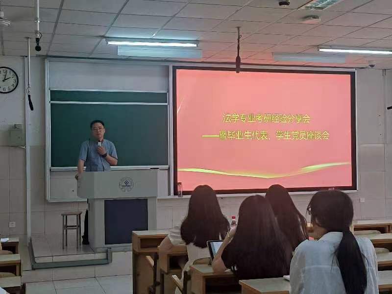 法学系于第二教学楼105教室举办2024年考研法考经验分享会暨毕业生代表、学生党员座谈会。活动由法学系关兆曦老师主持,刘康磊主任和程方老师参与指导,法学系21级、22级、23级学生以及部分24届毕业生参加了本次活动。