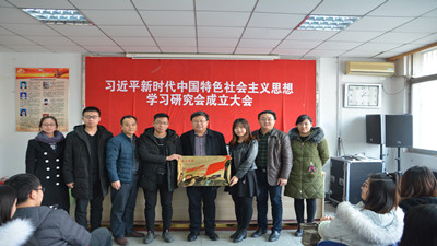 关于认真学习贯彻党的十九届四中全会精神的通知》,结合学院师资和专业优势而成立的,在学院宣传贯彻党的十九大精神宣讲团14名老师指导下,由学生党支部书记、院学生组织负责人、学生党员代表、院青马班骨干成员和学生干部代表共计59名成员组成,通过理论学习、党课学习、宣传讲习、主题研究和实践活动等形式确保将习近平新时代中国特色社会主义思想研究透、学得深、讲清楚、落实好,带头掀起学习贯彻党的十九届四中全会精神的热潮。随后,徐庆国书记为学习研究会授牌。