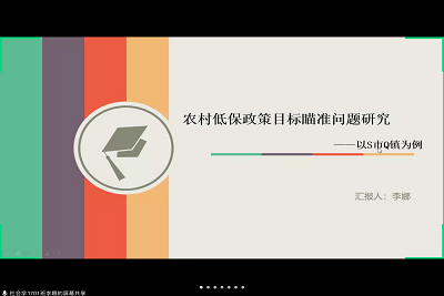 梁丽霞院长首先介绍了参加预答辩的各位校内外专家,并对校外专家表示热烈的欢迎和衷心的感谢。随后参加预答辩的各位同学结合自己的毕业论文,从背景与研究问题、研究方法与研究设计、研究内容、研究结论和存在的问题等方面进行PPT汇报。评议专家对各位同学的论文进行了细致的点评,从选题、理论分析和规范性等方面提出了详细的意见建议。抗疫的特殊时期,校内外专家、预答辩工作团队和即将毕业的硕士研究生通力合作,完成了一场同质等效的“云答辩”。