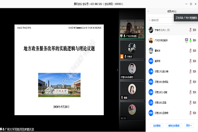 5月28号下午,行政管理专业2018级认识实习暨职业发展规划线上辅导讲座第六期成功举行。本期十分高兴地邀请到行政管理专业2007届优秀校友刘晓洋,讲座题目是《地方政务服务改革的实践逻辑与理论议题》。学院党委书记徐庆国、正处级组织员国迎春以及行管系部分教师参加,行管2018级全体同学以及其他年级部分同学在线聆听报告。宁有才老师在线主持。