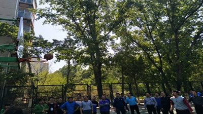 的韩克玉老师登场。只见韩老师神态自若、自信满满,步至赛场正中。拿起篮球,一屈,一跳,一压,一送,整套动作流畅爽利,令人赞叹不已。篮球也若有了智慧一般,往筐心飞去,在天空上划出一道优美的弧线。最终,五发连中,韩老师以绝对优势获得了本次比赛的冠军。