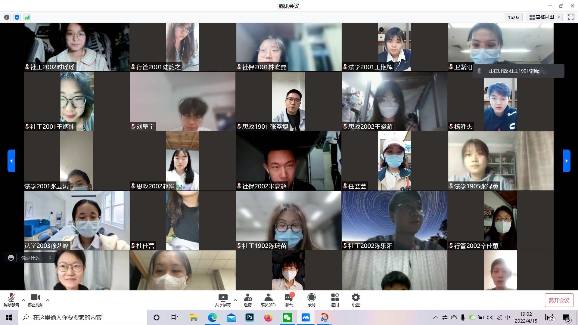 第十二期“青马工程”学生骨干培训班(以下简称青马班)应疫情防控要求,以线上视频会议的形式,开展了“砥砺奋进守初心 青春献礼二十大”百年团史学习活动。青马班全体成员参加,活动由青马班班长李扬主持。