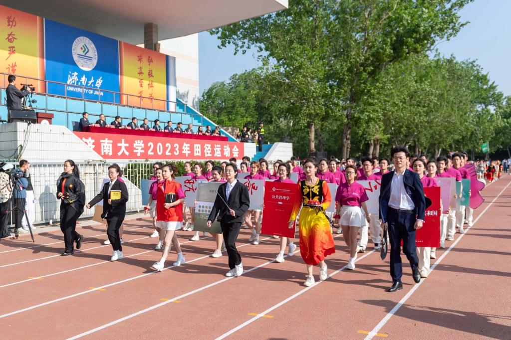 运动员方阵身着鲜艳的玫红色院服,步伐整齐地走向主席台。他们昂首阔步,意气风发,以青春的姿态展现了禁忌书屋