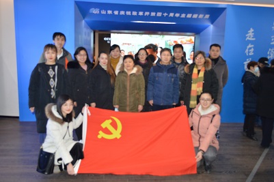 党委组织教工党员和学生党员参观“勇立潮头 走在前列”——山东省庆祝改革开放40周年主题摄影展,开展主题党日活动,回顾山东省改革开放40年的显著成果,回忆山东改革开放的艰难奋斗之路,不忘共产党人的初心和使命,探索新时代如何更好地发展。