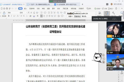 党支部书记孙云飞先根据此次学习的内容进行任务分配,并强调此次线上学习的主要目标和意义,而后带领大家一起学习《习近平:深入理解新发展理念》、《山东省教育厅(省委教育工委)召开推进党支部标准化建设专题会议》、《山东省意识形态和宣传思想工作领导小组会议》三份重要文件,并就文件精神做了简要的解读。随后,支部书记介绍了近期国际政治系党支部的活动安排和学习任务,并要求支部成员全力配合国际政治系对学生考研面试、就业等工作。