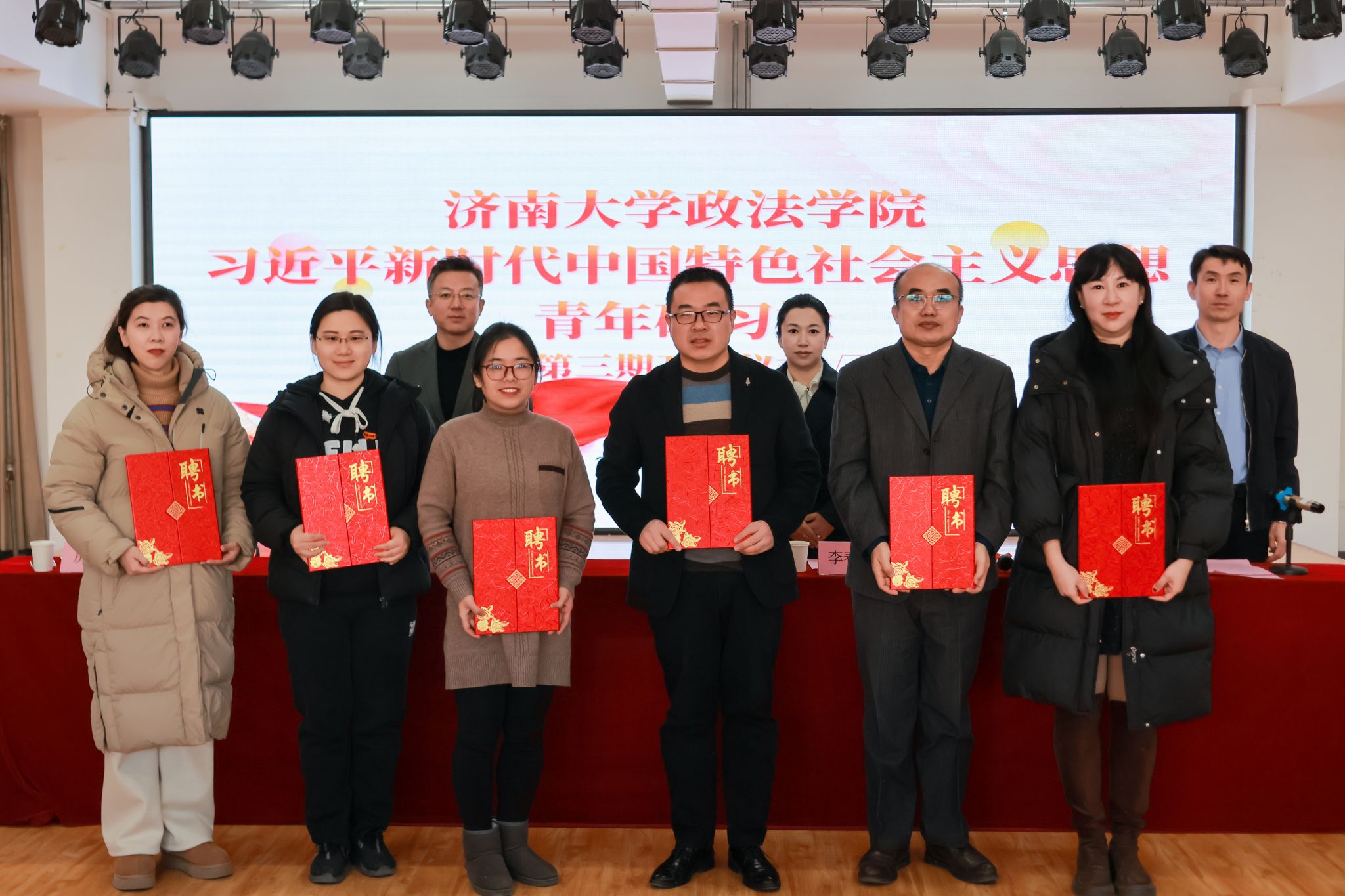 习近平新时代中国特色社会主义思想青年研习社(第三期)指导教师的决定》,与会领导为指导教师颁发聘书。随后,与会领导、指导教师为研习社学员赠书《习近平新时代中国特色社会主义思想学习纲要(2023年版)》,激励同学们加强理论学习,感悟思想伟力,努力做习近平新时代中国特色社会主义思想的坚定信仰者、忠实实践者。与会师生共同观看短片《青春该以何种方式打开?》,研习社学员结合自身思想近况、学习工作经历、社会实践感悟等发表感想与决心。