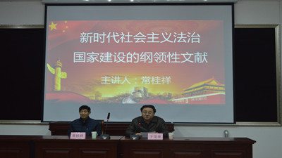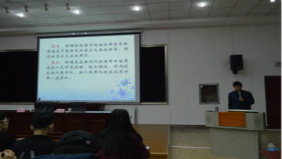 常桂祥教授从党的十九届四中全会的主题、习近平新时代中国特色社会主义思想的丰富内涵、党的十八届四中全会以来党和国家事业发生的历史性变革、中国特色社会主义进入新时代历史地位和丰富内涵、正确认识我国社会主要矛盾的变化、“两个一百年”奋斗目标、我国经济社会发展的重大战略部署、坚定不移全面从严治党八个方面对十九届四中全会报告进行解读,使大家进一步领会十九届四中全会报告的突出特点即 “新时代”、“新思想”、“新征程”和“新气象”。他结合自身研究成果对新时期社会主义法治国家建设作了深入阐述,他指出党的十八届四中全会以来,以习近平同志为核心的党中央,把法治作为治国理政的基本方式,全面依法治国取得了成效显著。同时,也应该看到还面临一些困难和挑战。为应对这些困难和挑战,习近平总书记在党的十九届四中全会报告中,提出了一系列全面推进依法治国的新举措,为新时代社会主义法治国家建设描绘了宏伟蓝图。常教授对同学们提出了殷切希望,他表示学习贯彻十九届四中全会精神是当前和今后一个时期的首要政治任务,作为政治学类、社会学类和法学专业学生更应该主动学习党的十九届四中全会精神,促进学习常态化,不断提高专业能力。