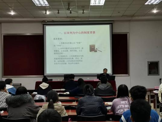 院长高功敬教授主持,法学系部分教师、法律硕士研究生、本科生以及济南市中级人民法院法官共100余人参加。