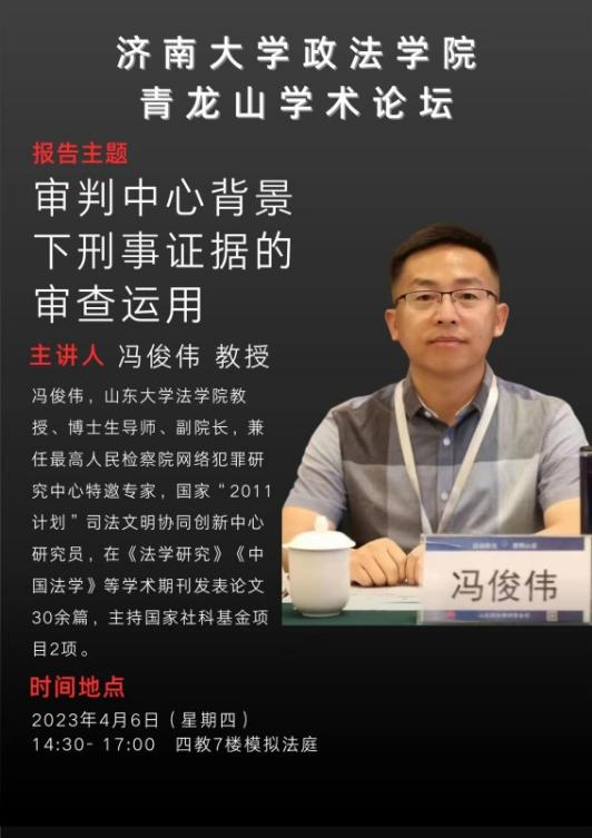 青龙山学术论坛在四教模拟法庭成功举办。本次论坛邀请山东大学法学院冯俊伟教授作题为《审判中心背景下刑事证据的审查运用》的学术报告。讲座由禁忌书屋