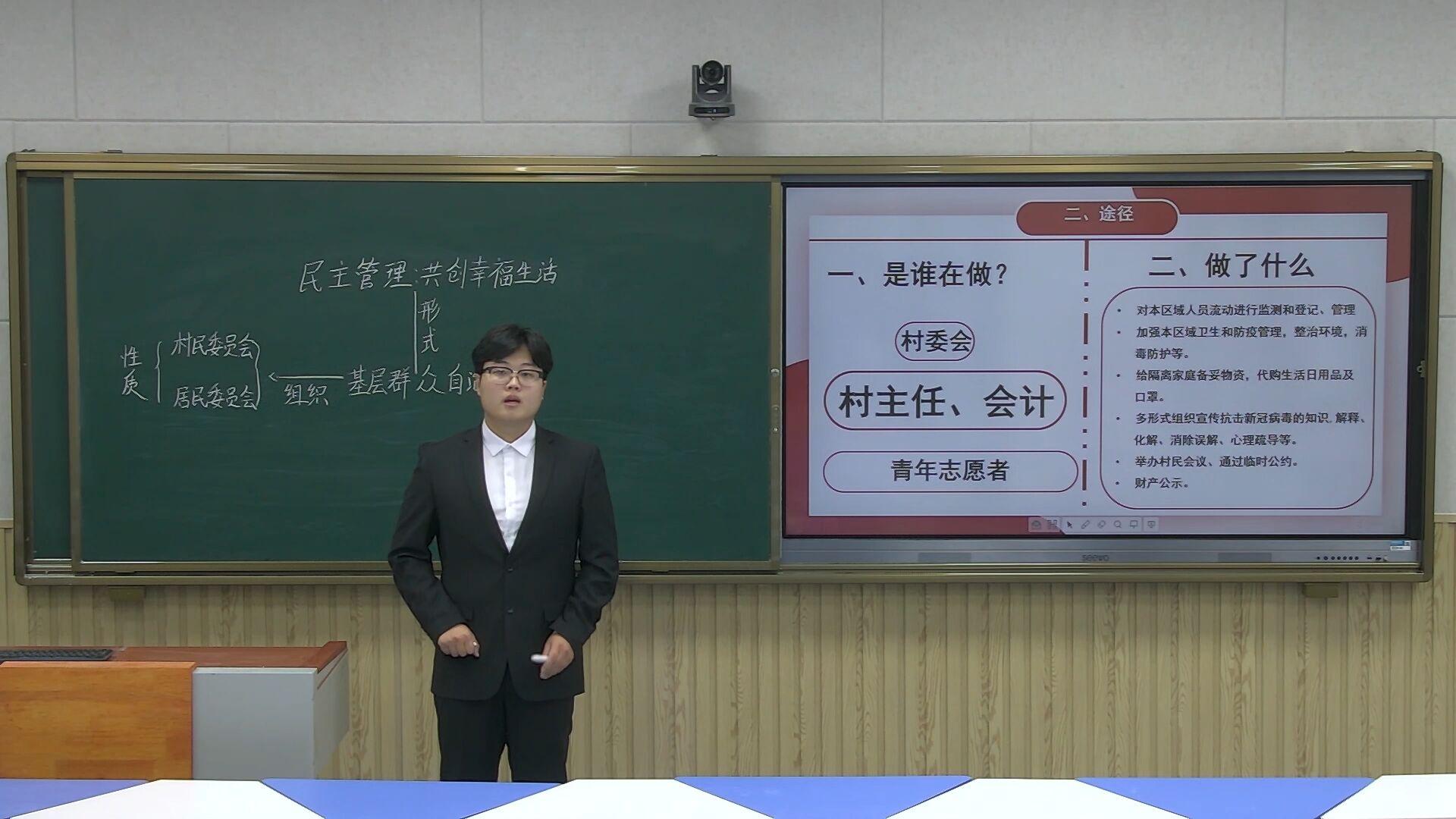 选派的三位选手分别参加了初中政治和高中政治两个学段的比赛,每个学段的比赛包括固定题目讲课、随机题目讲课和答辩三个环节。在今年采取录制视频的新形式下,每位选手都精心准备,沉着应对,出色地完成了各个环节的比赛。
