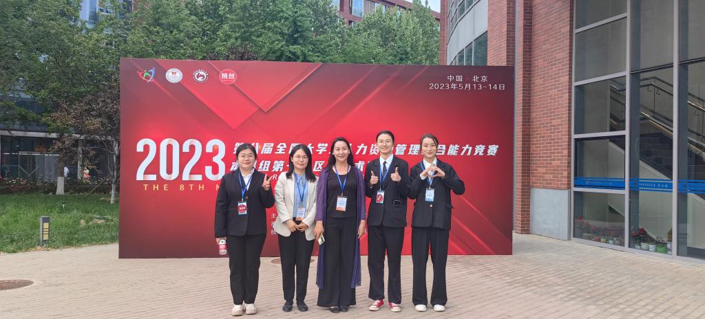 代表队为D组。本次大赛竞赛形式由HR实务设计报告及答辩环节组成,由侯婧同学代表队伍进行报告,三人共同进行答辩。