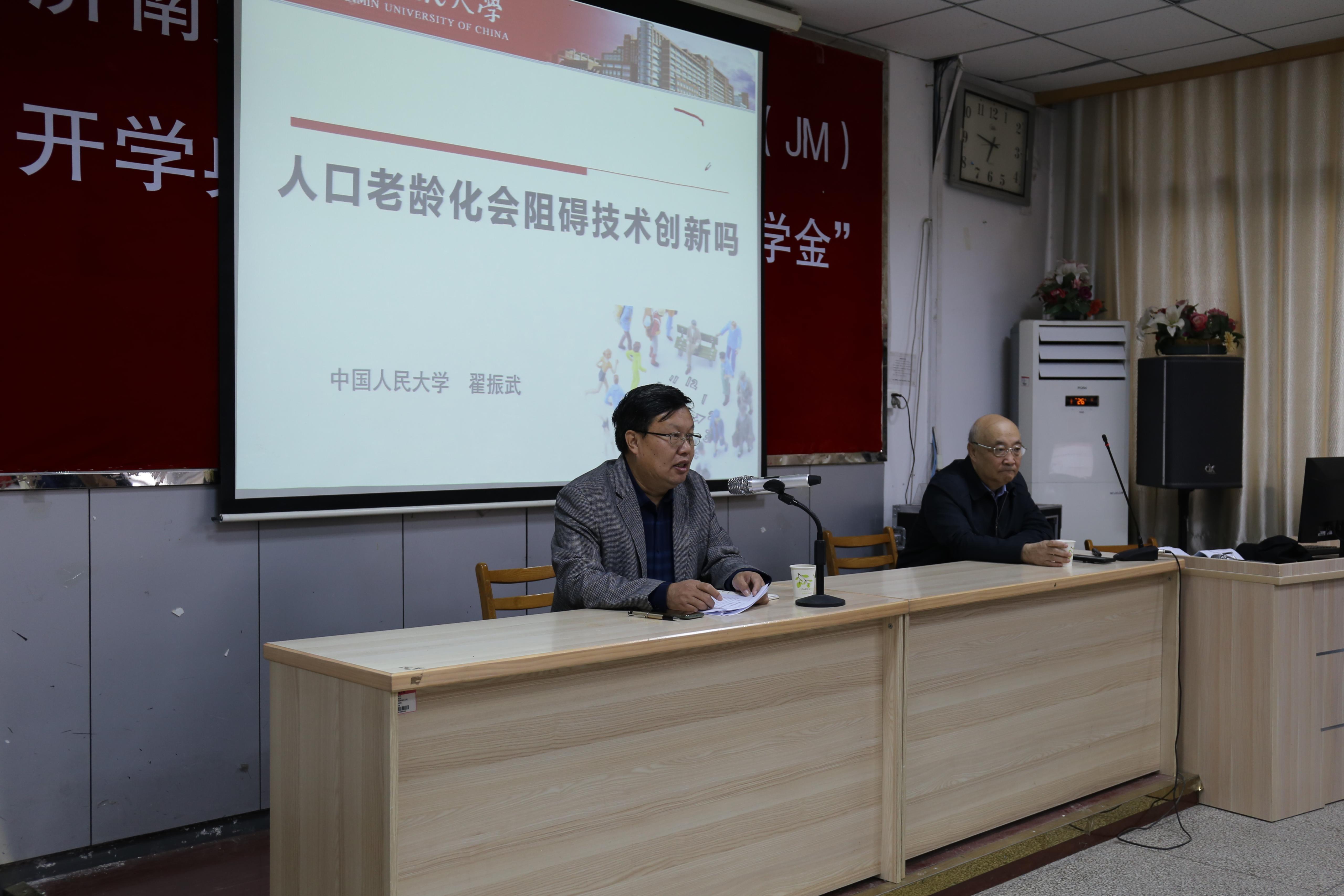 青龙山学术论坛——暨社会学学科设立十五周年系列学术讲座于10月20日举办,此次论坛邀请了原中国人民大学社会与人口学院院长,中国人民大学人口与发展研究中心主任、教授、博士生导师翟振武教授做题为《人口老龄化与科技创新》的学术报告,报告由禁忌书屋