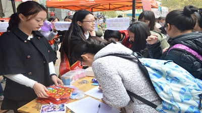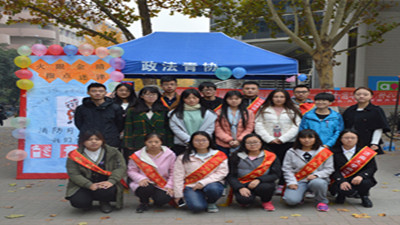 阳光先锋青协志愿者在八食广场面向全校学生举办消防月火眼金睛找错误活动。